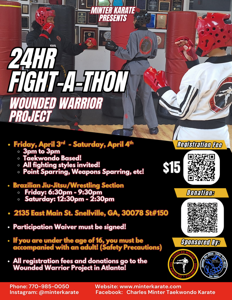 For more info, call 770-985-0050 or email us at minterkarate@gmail.com